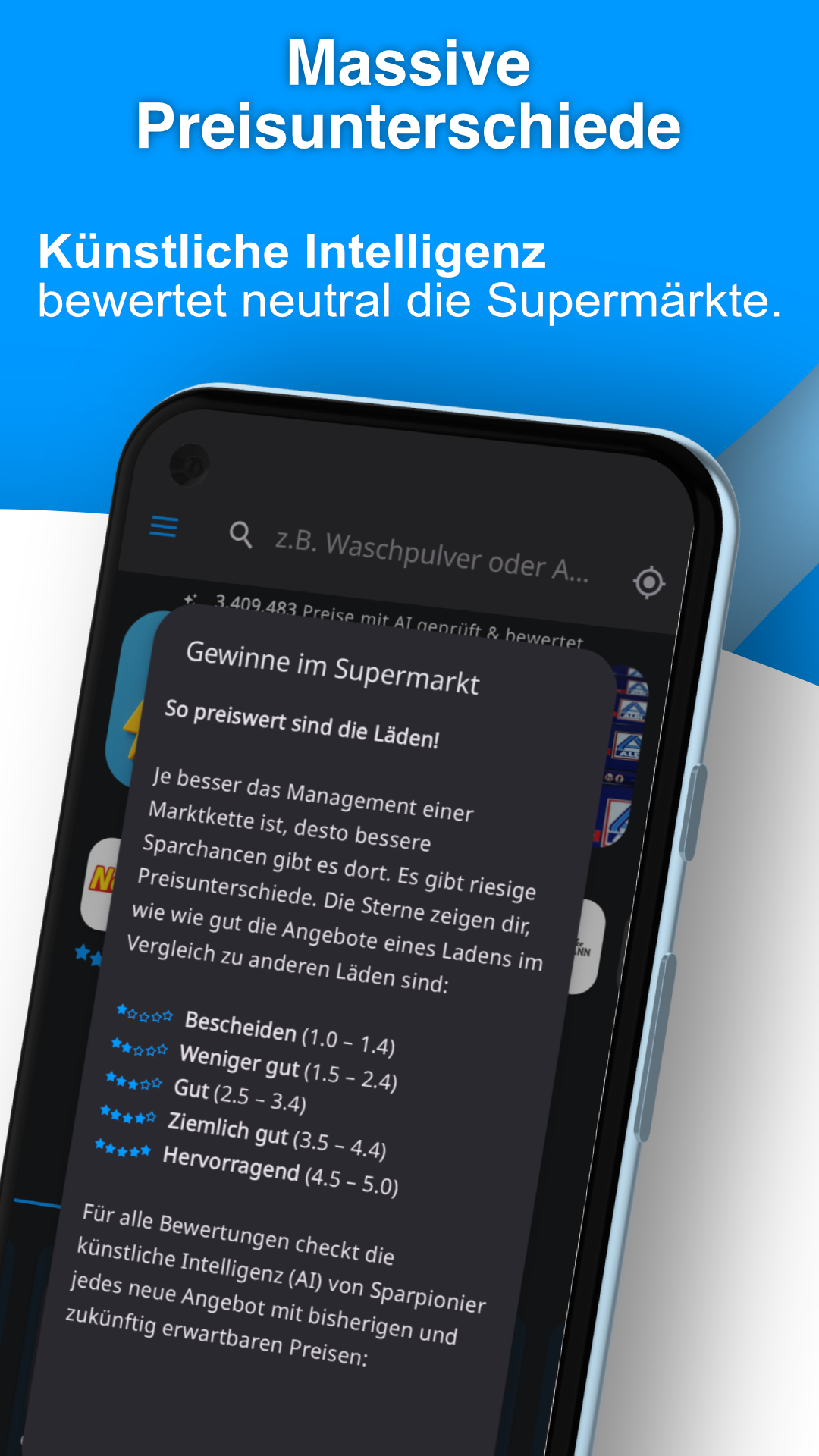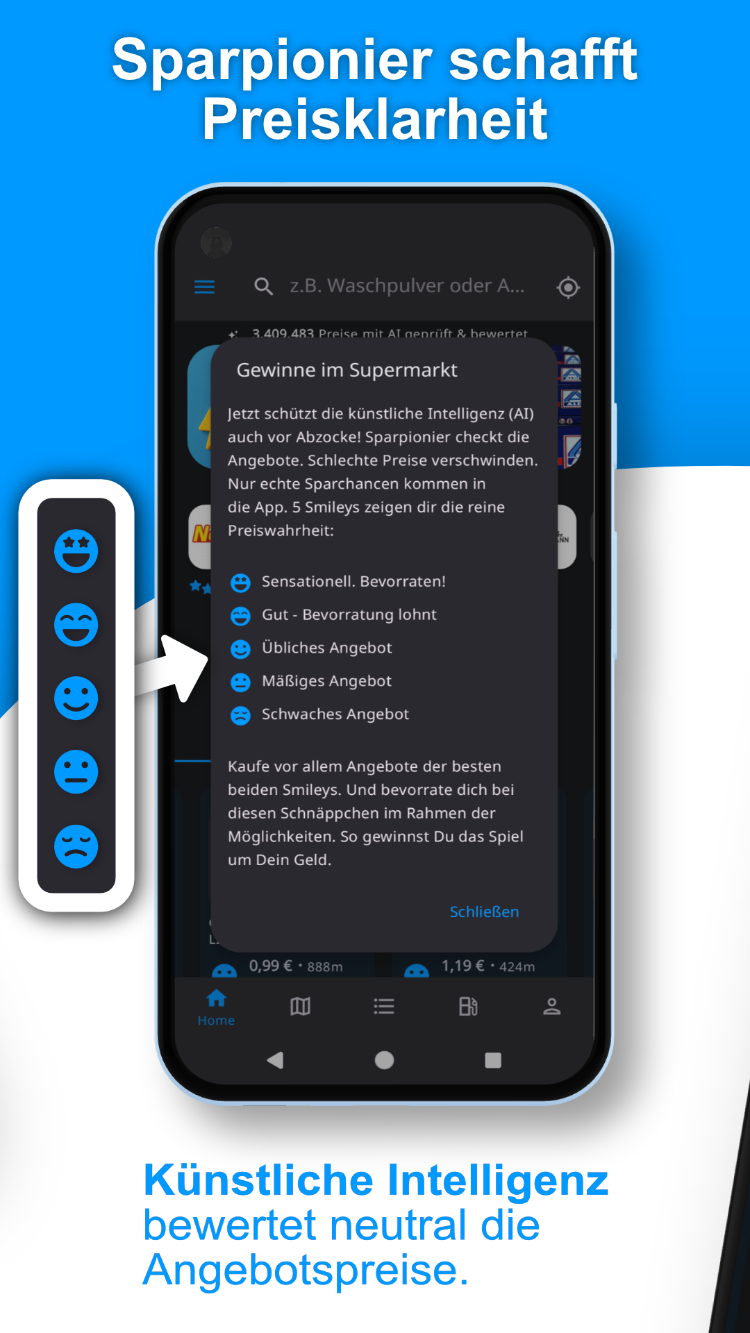 Für die Bewertung prüfen wir jeden Laden über einen Warenkorb der beliebtesten Produkte. Unser Algorithmus bewertet u.a. auch, wie oft und wie lange die Schnäppchen im Laden gelten. Aufgrund unserer jahrelangen Preisforschung haben wir festgestellt, dass es sich mal weniger und mal mehr lohnt, in einem Laden zu kaufen. Je nach Woche oder Tag. Sparpionier AI zeigt dir auf einen Blick, wo man gerade besonders gut sparen kann.